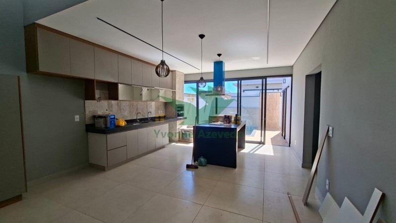 Casa em condomínio com 03 suítes amplas todas com armários, banheiros com pia de granito, ambiente integrado, moderno e funcional, com pé direto alto, cozinha planejada com pia dupla conta com armários e uma ilha central com cooktp, forno e coifa, área gourmet com churrasqueira, piscina com cascata, hidro e Led, área de serviço, escritório com acesso externo e 02 vagas de garagem. Condomínio com playground, quadra de beach tenis e portaria 24h.